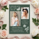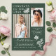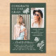 Modern Green White Butterfly Photo Graduation Party Acrylic Invitation presenta el sencillo texto "Felicitaciones al Grado" acentuado con una flor y mariposas con dos de tus fotos favoritas y personalizado con detalles de la fiesta de graduación y nombres en una elegante tipografía de escritura blanca. Personalice editando el texto en los cuadros de texto proporcionados y agregando sus fotos favoritas. Diseñado por ©2023 Evco Studio www.zazzle.com/store/evcostudio