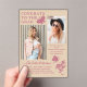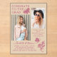 Moderno Partido de Graduación de Fotografías de Mariposa Rosa de Beige-Acrílico Invitaciones presenta el sencillo texto "Felicitaciones al Grado" acentuado con una flor y mariposas con dos de tus fotos favoritas y personalizado con detalles de la fiesta de graduación y nombre en elegante tipografía de escritura rosa. Personalice editando el texto en los cuadros de texto proporcionados y agregando sus fotos favoritas. Diseñado por ©2023 Evco Studio www.zazzle.com/store/evcostudio