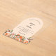 For an elegant and romantic wedding. A clear, transparent background decorated with orange, peach and pink florals. Arch shaped frame. Personalize and add your names and details.