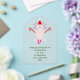 Esta impresionante invitación del Partido de los Navidades acrílicos presenta una imagen de arte digital de un lindo Navidad Axolotl. El Axolotl es de color rosa pálido con las branquias rosadas brillantes. Lleva en cada mano un bastón de caramelo de rayas rojas y blancas y lleva puesto un sombrero festivo de Santa Cruz Roja y Blanca. El axolotl es el tipo de salamandra de México. Hay texto personalizado para que puedas personalizar este diseño con todos los detalles del fiesta.