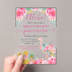 Acuarela Rosa y Oro Tropical de verano Piñas y diseño Flamingo con flores rosadas y confetti purpurina de oro