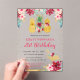 Invitaciones Acrílicas Piñas rosadas y doradas y flamencos 21º cumpleaños