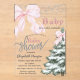 Invitaciones Acrílicas Pine Tree Pink Bow Snowflakes Baby Shower