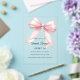 A clear, transparent background, decorated with a pink large bow with pearls. Personalize and add a name and party details.