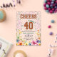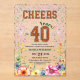 A modern design featuring a dark gold glitter number 40 with pink and emerald glitter and colorful flowers on the bottom. Customize the details for a chic Birthday Celebration.