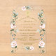 Invitación Primera Comunión. Elegant card design featuring watercolour delicate pink, blush flowers, a faux gold shining cross, on a transparent background. Use Personalize tool to add your info. For matching items, please, visit my Transparent Holy Communion Collection.