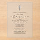 Primera Santa Comunión, tarjetas de invitación acrílicas con una cruz diseñada por un personalizado. La elegante tipografía de la tarjeta presenta una fusión de escritura manuscrita única y texto minimalista moderno, todo en tonos plateados, platino y tinta negra. La tarjeta en sí es la elección de acrílico escarpado o transparente.