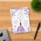 Celebre con estilo con esta elegante tarjeta de invitación acrílica con un diseño de acuarela dibujado a mano. Decorada con hermosas flores de lila morada y rosa blanca, una chica con un vestido de lila morada, delicadas mariposas y acentos plateados, esta invitación es perfecta para una fiesta de cumpleaños, dulces dieciséis, quinceañera o cualquier ocasión especial. Crea una celebración memorable y mágica con este hermoso diseño que capta el encanto de un tema floral azul. ¡Artículos coincidentes disponibles en la tienda! c) El estudio Happy Cat Studio