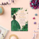 Personalice esta elegante invitación de acrílico de color verde esmeralda, de 16 años, fácil y rápidamente. Simplemente haga clic en el botón personalizar para editar los textos, cambiar las fuentes y los colores de las fuentes. Con rosas verdes esmeraldas, mariposas y un chica vestido con un vestido de bata verde esmeralda purpurinoso. Elementos coincidentes disponibles en el almacén. c) Somerset Fine Paperie