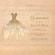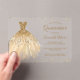 Invite a sus huéspedes de la quinceañera con estilo con esta elegante invitación de fiesta con un hermoso vestido de oro brillante y los detalles de su fiesta en el guión de caligrafía de tipografía de oro para que usted pueda personalizar bordeado por un falso purpurina de oro en una vista a través de un fondo acrílico. Diseñado por Susan Coffey.