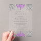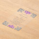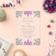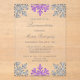 Invitación a quinceañera de invierno con copos de nieve de plata y púrpura