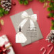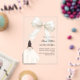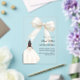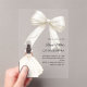 This sophisticated design features a large ivory bow adorned with delicate pearl details, paired with a graceful gown illustration. The transparent acrylic finish creates a modern, refined look that feels both luxurious and unforgettable.