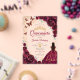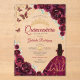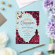 Burgundy, gold and white Quinceanera celebration invitation. Features brunette girl in ball gown dress, script font, gold butterflies, watercolor roses and tiara. Perfect for an elegant princess style glam celebration. Personalize with your own details. Stylish transparent or frosted acrylic invitations.