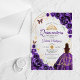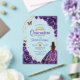 Invitaciones Acrílicas Quinceanera Purple Floral Dress Gold