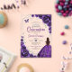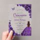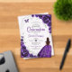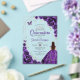 Invitaciones Acrílicas Quinceanera Purple Silver Floral Dress