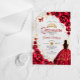 Invitaciones Acrílicas Quinceanera Red Roses Dress Gold White