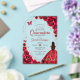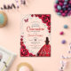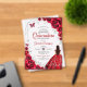 Invitaciones Acrílicas Quinceanera Red Silver Floral Dress