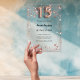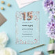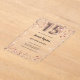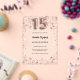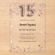 Para una elegante Quinceañera, fiesta de cumpleaños número 15. Un trasfondo claro y transparente. Decorado con estrellas de oro rosa y número 15, escrito con un tipo de letra de estilo globo. Personalice y agregue su nombre y detalles del fiesta.