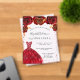Para una elegante Quinceañera, Un fondo claro y transparente. Decorado con rosas rojas, chispas y un vestido rojo. Personalice y agregue su nombre y detalles del fiesta.