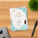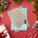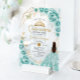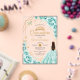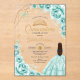 Invitaciones Acrílicas Quinceanera Turquoise Dress Floral Gold