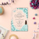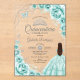 Invitaciones Acrílicas Quinceanera Turquoise Silver Floral Dress
