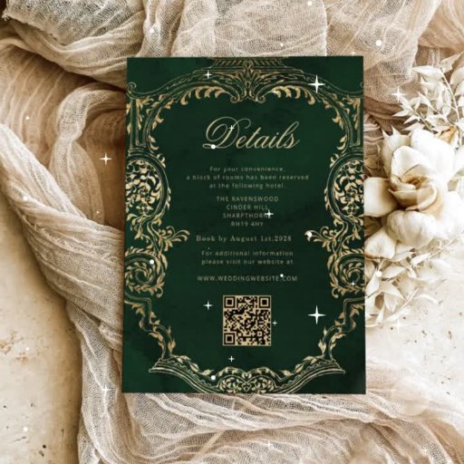 Para una presentación más cuidada, te recomendamos que elijas el fondo de la invitación con un fondo de tarjeta verde esmeralda, el color rico saca los tonos dorados y añade un toque dramático y elegante que cautivará a tus huéspedes. Los elementos coincidentes están disponibles.
