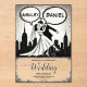 Esta elegante invitación a una boda acrílica estilo libro de historietas en blanco y negro es perfecta para un boda moderno. El diseño es sencillo y cuenta con una elegante caligrafía negra y un ilustracion de novios con una temática de historietas.