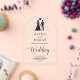 Esta elegante invitación a una boda en arco acrílico en blanco y negro es perfecta para un boda moderno. El diseño es sencillo y cuenta con una elegante caligrafía negra y un ilustracion de novias y novios con un fondo transparente y claro. La tarjeta de invitación incluye los detalles del boda en la parte posterior en lugar de pagar por una tarjeta separada.