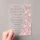 Invitaciones Acrílicas Rosa Dorado Sparkle Vestido 70 cumpleaños