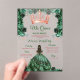 Invitaciones Acrílicas Rosa floral verde esmeralda Crown Mis Quince