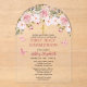 Elegante color de agua rosa rosa rosa floral y mariposas chica Primer diseño de invitación a la Santa Comunión con flores de diferentes tonos de rosa a malva con hojas de verde oliva en un ramo de alta franja que rodea los detalles de tus dulces chicas. Una cruz de trinidad de tono dorado se sienta por debajo del patrón floral, y la parte posterior presenta un fondo sutil de color rosa rubor. Este diseño floral compuesto es de Holiday Hearts Designs (derechos reservados).