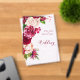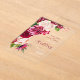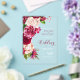 Una florida y brillante multitud de rosas en tonos burdeos y crema es el punto fuerte de muchas de las piezas de esta suite boda que también cuenta con un elegante guión de texto y un diseño moderno. La invitación a la boda acrílica transparente que se muestra aquí tiene un frondoso borde lateral de rosas. Introduzca fácilmente los detalles de su boda utilizando la plantilla proporcionada. Busque ID584 para ver todas las piezas coincidentes en este hermoso conjunto de bodas.