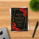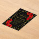 Invitación de oro y de cumpleaños negro con rosas rojas tradicionales vibrantes y tipografía de escritura clásica