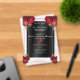 Rosas rojas, hojas de oro e invitaciones acrílicas de la quinceañera negra. Celebre sus años de Quince con estas elegantes invitaciones acrílicas para su fiesta de Quinceañera. Estas invitaciones acrílicas personalizados son fáciles de personalizar con su propia información. Esta plantilla DIY editable funciona rápida y fácilmente. Añade tus detalles y envíate estas invitaciones. Echa un vistazo al resto de nuestra Colección de Quinceañera Black with Red Roses con más ítems como favores de fiesta, carteles de entrada, libros de invitados y mucho más para objetos personalizados adicionales y decoraciones para tu celebración fiesta de eventos XV años.