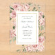 Estas hermosas invitaciones botánicas de boda acrílicas y nítidas cuentan con románticos rosas de acuarela rosa, con un marco de oro falso. También hay caligrafía de escritura moderna y texto clásico.