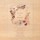 Haga una primera impresión impresionante con esta invitación a bodas florales de acrílico. Con un trasfondo transparente y una delicada corona de flores neutras y de tonalidades amarillas, esta invitación exuberante elegancia y sofisticación moderna. El arreglo suave de las peonías, rosas y follaje otoñal le da una sensación romántica y terrenal, perfecta para bodas otoñales, ceremonias botánicas o eventos de moda bohemiana. Personaliza tus nombres, fechas y lugares para crear un estilo elegante que los huéspedes apreciarán.
