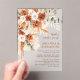 Invitación a la boda acrílica floral rústica de Terracota | Boho Pampas Grass & Rosa Design Invite a sus huéspedes en un estilo inolvidable con esta rústica invitación a bodas de acrílico floral de terracota. Diseñada con un impresionante arreglo de naranjas y cremas quemadas, pasto de pampas, flores secas y vegetación eucaliptus, esta moderna pero romántica invitación es perfecta para bodas boho, rústicos, otoñales, rurales y al aire libre. El efecto acrílico transparente crea un ambiente de moda y lujo, mientras que la paleta de tierra lo convierte en ideal para recepciones de granero, ceremonias de viñedos y celebraciones de inspiración natural. Personalice con sus nombres, fecha, lugar y detalles de RSVP para una única persona a su gusto. Póngalo en pareja con el código QR de nuestro fondo de luna de miel para un tema de decoración boda cohesivo.