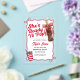 This editable soda pop baby shower invitation features a charming retro theme with a hand-drawn red coquette bow, making it the perfect "She's Ready to Pop" announcement for your upcoming celebration.