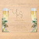 Champagne Bottles. Gold text. Invitation. She Said Yes. Watercolor. Tropical. Acrylic.