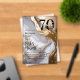 Elegante y moderno "70" y elegante texto de escritura "setenta" diseño de fiesta de cumpleaños con el número "70" sobrepuesto con la edad en escritura sobre un falso fondo dorado, blanco y gris de mármol. Perfecto para celebrar a tus amigos y familia más sofisticados.