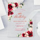 Las rosas rojas y las peonías rosadas onduladas están enclavadas en hojas de color verde oscuro en esta invitación de cumpleaños. La caligrafía clásica le permite a sus invitados saber que es un cumpleaños hito y quién es la celebración de cumpleaños. Este elemento forma parte de la colección Red Rose Pink Peony. Contiene las plantillas que puede utilizar para crear un conjunto de invitaciones único, signos de bienvenida y suministros de fiesta.