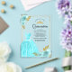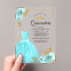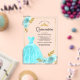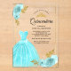 Invitaciones Acrílicas Sparkling Gown Aqua Blue Floral Gold Quinceanera
