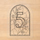 Faux Stained Glass Style Table Number Five. Please note: This is a stained-glass inspired printed design, not real stained glass. Modern stained-glass inspired table number 5, featuring bold cathedral-style leading lines in a clean, minimalist layout. Line colour and background can be customised to match your wedding palette. Printed on clear acrylic. Sold as individual table numbers, as the table number within the design is non-editable. Perfect for modern, minimalist, black-and-white, or cathedral-inspired weddings.