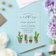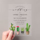 Invite a su boda con nuestra invitación a una boda acrílica de personalizable. Con suculentos y cactus en macetas de color agua. Este diseño de inspiración botánica combina la elegancia de las flores acuáticas con la belleza de los suculentos y los cactus. Esta invitación a bodas es perfecta para las parejas con un boda boho, rústico o de inspiración natural, que ofrece una estética contemporánea pero terrenal. Personalice agregando los detalles de su boda. Ya sea que esté planeando un boda del desierto, una celebración en el jardín o simplemente le guste la belleza de las plantas, esta invitación marcará el tono de su día especial.