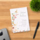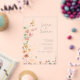 Esta suite boda de moda con su cálida paleta de colores soleados, su letra manuscrita y sus delicados arreglos de flores silvestres tiene un aspecto atemporal y sofisticado que impresionará a sus huéspedes y le ayudará a hacer su día especial inolvidable. La llamativa invitación a una boda acrílica, mostrada aquí en blanco con amplios bordes de flores silvestres sobre un fondo transparente, proporciona una plantilla para añadir fácilmente los detalles del evento. Busque ID1023 para ver todos los productos de este conjunto de bodas.