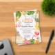 Tropical flowers with palm leaves, and flamingos. This invitation is easily customized for your event by simply adding your details.