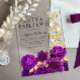 Invitación a las flores moradas de la fiesta de cumpleaños número 60 Vestido de oro Ver colección coincidente en Nest Store y Nest Muchas gracias