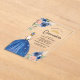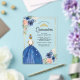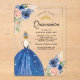 Invitaciones Acrílicas Vestido floral azul real Princesa Oro Quinceanera