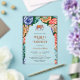 Sorprenda a sus invitados con esta elegante invitación de despedida de soltera india que presenta hermosos arcos y colorido arte. Simplemente agregue los detalles de su evento en esta plantilla fácil de usar para hacer que sea una invitación única.