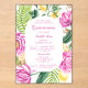 Tulipanes Lemones Quinceañera Acrílica Tulipanes Floral Peonies presenta un marco floral de tulipanes rosados, peonías rosadas, cítricos de limón con frondas de palma y vegetación con acentos dorados shimmer sobre un fondo blanco. Dentro está su información de invitación de personalizado Quinceañera. Personalice editando el texto en los cuadros de texto. Diseñado por Evco Studio www.zazzle.com/store/evcostudio